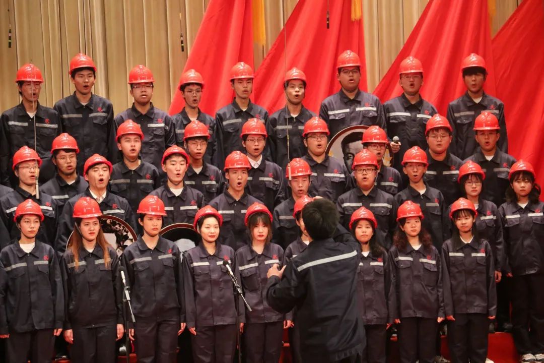 与其他学院的同学相比,必威betway的同学们的着装与传统的西装礼服不同,深蓝色的工装与红色安全帽——看起来并不出众,但是就是一群这样打扮的人,在祖国需要的时候,挺身而出,牺牲自己人生中最宝贵的几十年,造福了我们祖国千秋万代。看啊,他们在台上昂首挺胸,目光如炬,满是自豪!当前奏响起,所有同学们集中注意力,盯着指挥的手势,一,二,三,吸气,“茫茫的戈壁滩”一出,浑厚的沉重感扑面而来,仿佛真的置身于戈壁滩中,苍茫而荒凉。行曲的安排也有层次,有情感,从“我对自己说”的喃喃细语到“我爱祖国”的慷慨激昂,同学们情绪高涨,时而细声婉转,时而激昂高亢,尽情表达自己对祖国的热爱,自豪地唱出一声“祖国需要我”。