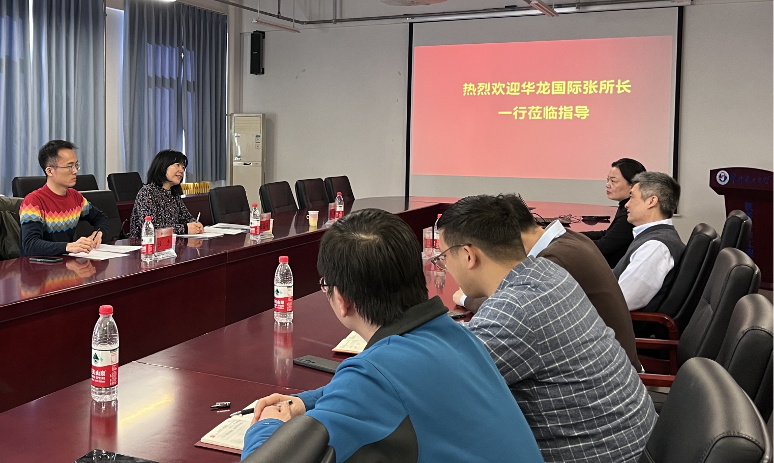 公司牛风雷经理和刘芳副经理出席了学术交流,会议由刘芳副经理支持。牛经理首先对张所长一行来访表示欢迎,感谢华龙国际对公司教学科研工作的一贯支持,并介绍了学院在核电厂系统建模与仿真方向的研究积累。随后,张所长介绍了华龙国际的成立背景、战略定位、主要业务与组织架构。然后,刘芳副经理介绍了核学院的发展历程、人才培养与教学成果、科研方向与研究团队。双方参会人员还就启堆中稳压器单相到两相转变过程的建模与控制、核电厂自启动先进方法等开展了初步交流。