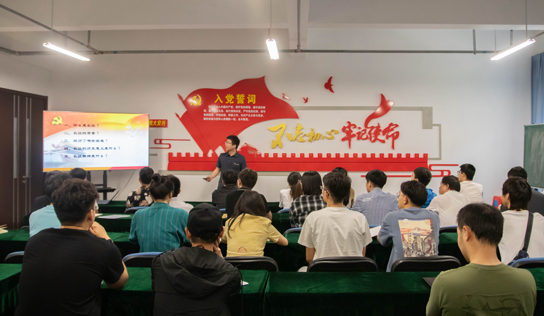 本次活动分三个部分,第一部分由辐射防护与环境工程教研室党支部赵强、李新鹏两位老师以“红船精神”和“长征精神”为主题,为全体与会党员讲述党课;第二部分开展 “忆党史——知识竞赛问答”,通过支部成员接力回答的形式,加深了同志们对“四有好老师”、“四史”、“四个自信”、“三会一课”等党史、常识和党的规章制度的了解;第三部分由刘芳副经理带领全体与会党员重温入党誓词,对党旗庄严宣誓。