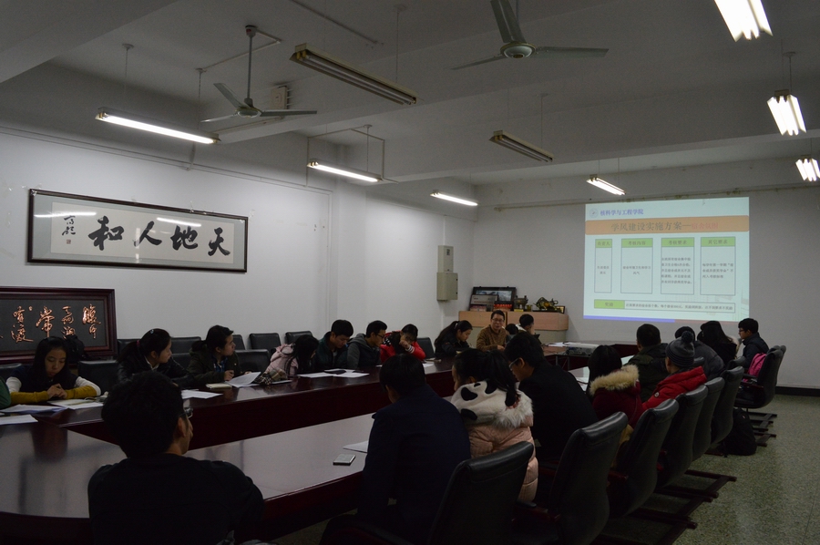 学院《学风建设实施办法》基于学风氛围营造和支持班级建设而设定,以提高科技竞赛和实践活动的参与率、获奖率,宿舍氛围的营造以及考风等方面进行推动和评比。李辉老师详细解释了《学风建设实施办法》的基本内容和测评点,对执行过程中可能遇到的问题进行了解释和答疑,同时要求各班级在同学中加大宣传力度,推动学风奖励计划的落实,在全院营造“乐学好学”、“精于专业”、“积极创新”的良好氛围。