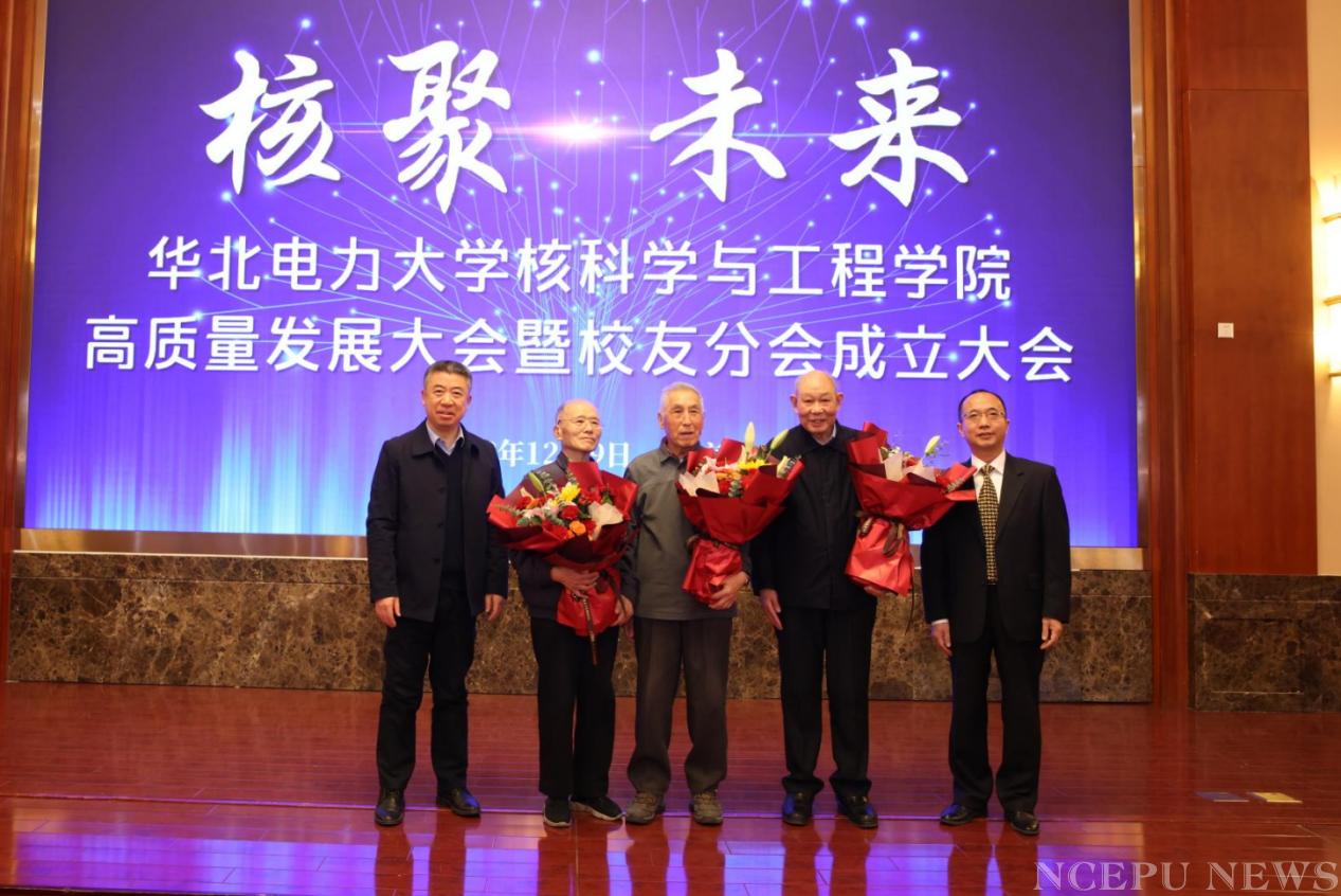 出席成立大会的三位老员工上台与大家见面,代表六十年前原子能发电专业全体毕业生接受在校老员工的献花,与会人员用经久不息的掌声,表达了对老一辈员工最高、最诚的敬意。
