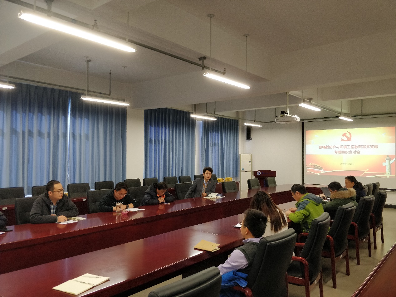 根据习近平总书记关于“不忘初心、牢记使命”主题教育重要讲话和重要指示精神,按照学校关于召开主题教育专题组织生活会和开展民主评议党员的通知要求, 2019年11月27日,核辐射防护与环境工程教研室党支部在主G209开展了专题组织生活会,公司党委副书记赵珥希老师,核辐射防护与环境工程教研室党支部书记刘芳老师,支委委员吴军、赵强老师等党员教师参加了组织生活会。