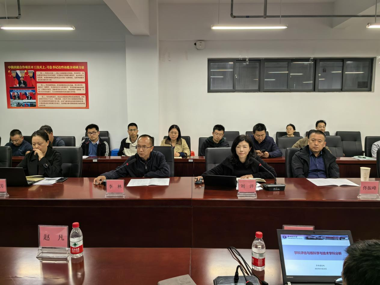 首先,李林对李惊涛一行来院指导交流表示热烈欢迎,并着重介绍学院近期取得的一系列喜人成果。李惊涛做了《学科评估与核科学与技术学科分析》专题报告,全面介绍了学校学科专业的总体建设情况,对标第五轮学科评估和软科排名,对核学科的发展进行有针对性的指导。刘洋汇报了学院的整体情况,深入分析了学院在团队建设中取得的成绩、存在的不足以及未来的发展思路。