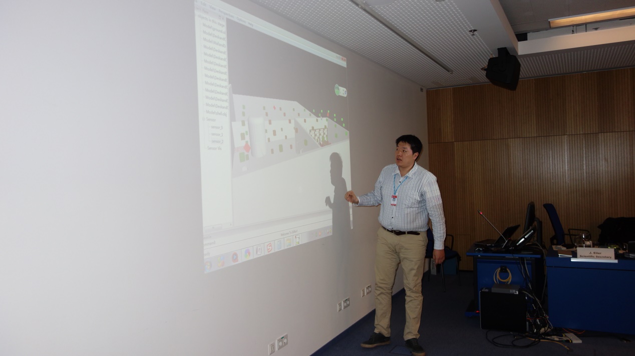 该协作研究项目由美国、法国、加拿大、中国等国家的10余个研究团队组成,其中包括美国橡树岭国家实验室、美国西屋公司等国际知名的研究机构和科技公司。在本次例会上,程晓磊老师做了《核电站环境参数三维可视化实时监测技术》的报告,并展示了其团队研发的基于无线传感网络的EP3D-environment parameter 3D 环境参数三维可视化实时监测)系统,受到了与会专家的一致好评。“核电站内屏障穿透通信”被列为该协作研究项目的子课题之一,而“环境参数三维可视化实时监测”也被列为无线技术在核电站里最具潜力的应用方向之一。