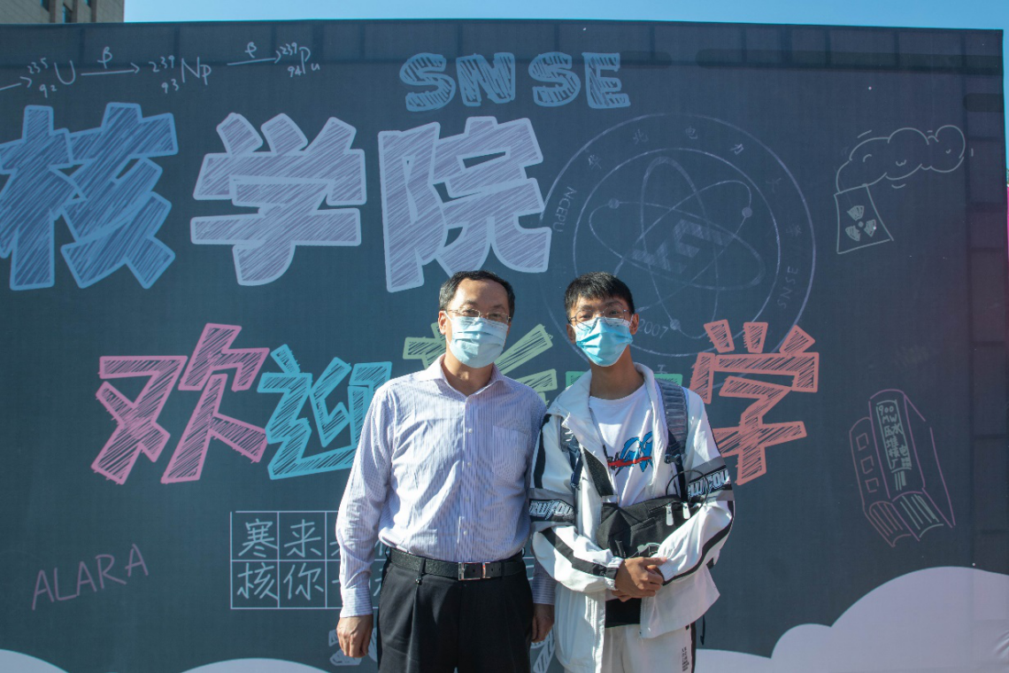 迎新过程中,杨勇平董事长和孙忠权副董事长也来到公司新生报到现场视察工作,亲切地问候现场工作的师生,并与学院新生合影。