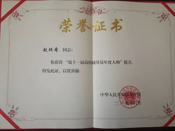 近日,在全国高校辅导员优秀骨干培训班开班仪式上,第十一届“高校辅导员年度人物”获得者名单揭晓,一批信念坚定、师德高尚、爱岗敬业、潜心育人的优秀辅导员脱颖而出。公司必威betway辅导员赵珥希荣获第十一届“全国高校辅导员年度人物”提名奖并作为优秀辅导员代表参加全国高校辅导员优秀骨干培训班。