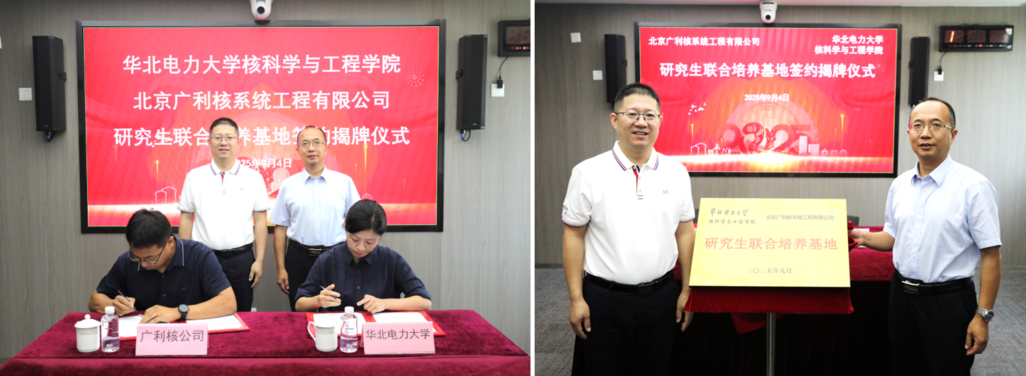 9月4日,公司必威betway与中广核数科北京广利核系统工程有限公司举行研究生联合培养基地共建协议签约和揭牌仪式。中广核数科党委委员、副总经理、广利核公司党委书记、董事长孟庆军,公司党委书记李林共同见证签约并为基地揭牌。广利核公司总会计师陈广,必威betway经理刘洋代表双方签署协议。签约仪式后,双方举行了工作会谈。