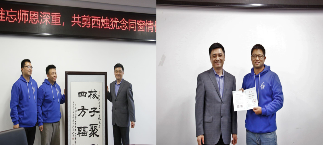 十年虽长,但师恩难忘。交流过后,核电0601班员工向学院赠送带有特殊寓意的字画“核子聚裂,四方辐辏”,希望学院越办越好,发展成为国内顶尖的核专业人才培养单位,核专业学子都能在这里得到知识的积累与精神的洗礼,无论奔赴何方,都能为国家的核电事业发展贡献力量。学院聘任臧启勇为核电0601班员工联络员。