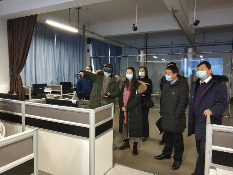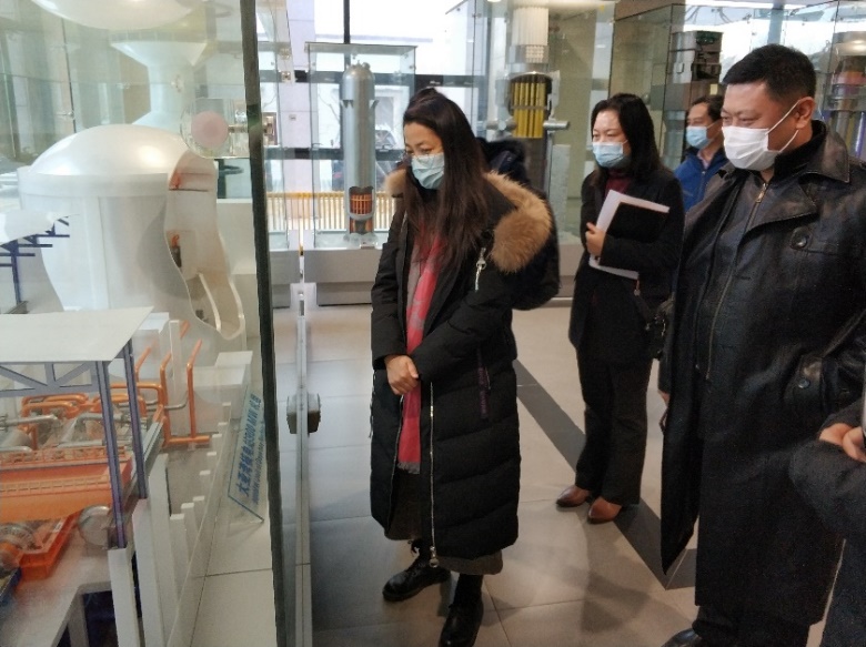 研讨交流结束后,调研团队参观了核反应堆仪表与控制实验室、核电厂辐射场可视化与虚拟现实实验室、核电系统仿真实验室等教学实验室。参观过程中,刘崇茹观看了核电厂虚拟可视化现场演示效果,对学院自主研制的教学实验台架予以肯定和鼓励。